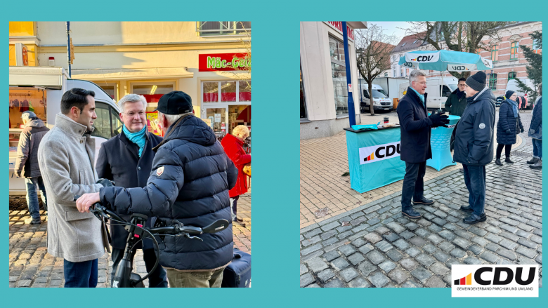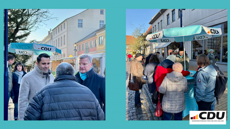 Unser Format „CDU hört zu“ war heute wieder auf dem Parchimer Markt vertreten. Der Austausch mit den Bürgerinnen und Bürgern war intensiv und konstruktiv. Viele nutzten die Gelegenheit, um ihre Fragen und Anliegen direkt anzusprechen.
