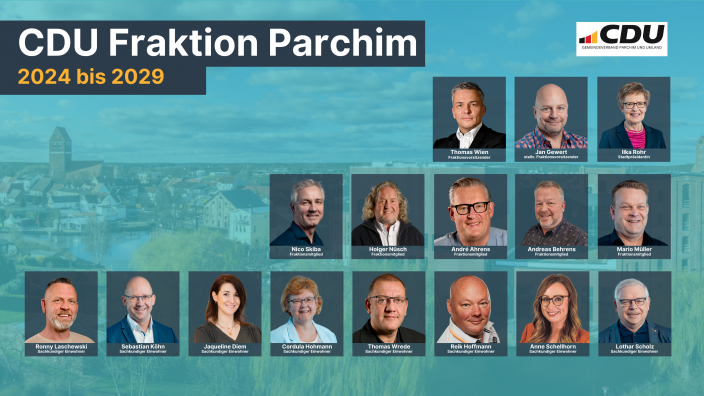 Die Stadtvertretung Parchim wurde im Jahr 2024 neu gewählt und hat seitdem die kommunalpolitischen Schwerpunkte für die kommenden Jahre gesetzt. Die CDU stellt dabei die stärkste Kraft im Stadtparlament und trägt maßgeblich Verantwortung für die Weiterentwicklung unserer Stadt. Unsere Fraktion arbeitet kontinuierlich daran, die Inhalte des Wahlprogramms umzusetzen. Dazu gehören unter anderem eine solide Finanzpolitik, stärkere Unterstützung für Familien und Vereine, die Verbesserung der städtischen Infrastruktur, der Ausbau sicherer Verkehrswege sowie eine verlässliche Wirtschaftsförderung, die Arbeitsplätze und Investitionen in die Region stärkt.